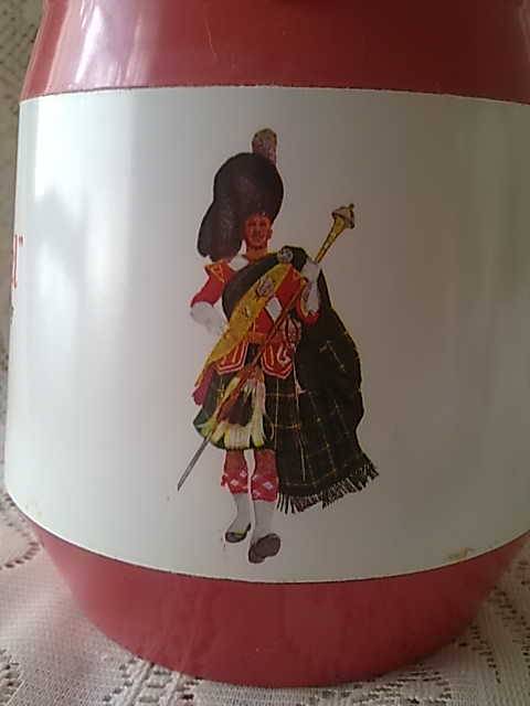 VINTAGE DEWARS PLASTIC WATER JUG WITH LID (MARCHING SCOTSMAN)