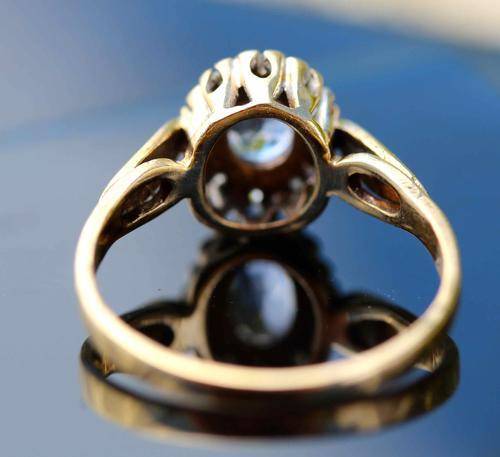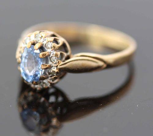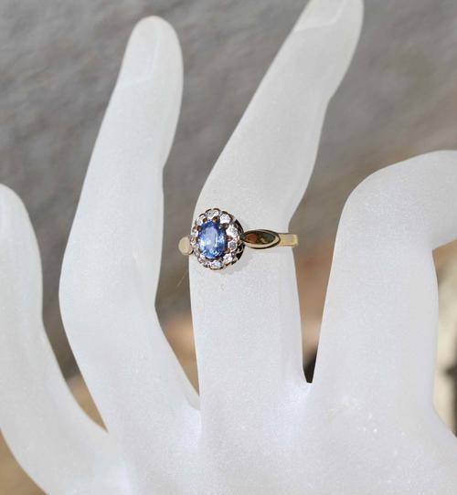 VINTAGE DIAMOND AND BLUE SAPPHIRE YELLOW GOLD RING FROM ENGLAND!
