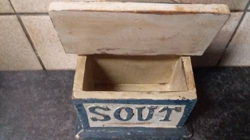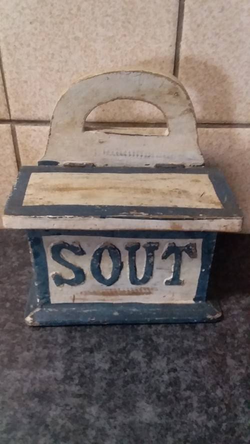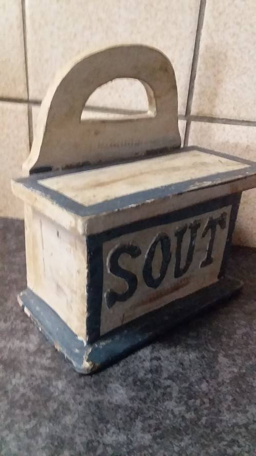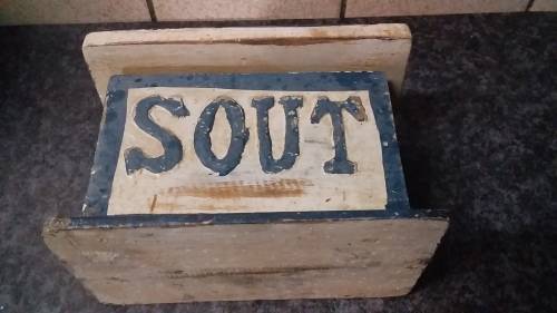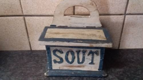 Vintage Distressed Looking 'SOUT' Salt Wall Hanging Holder