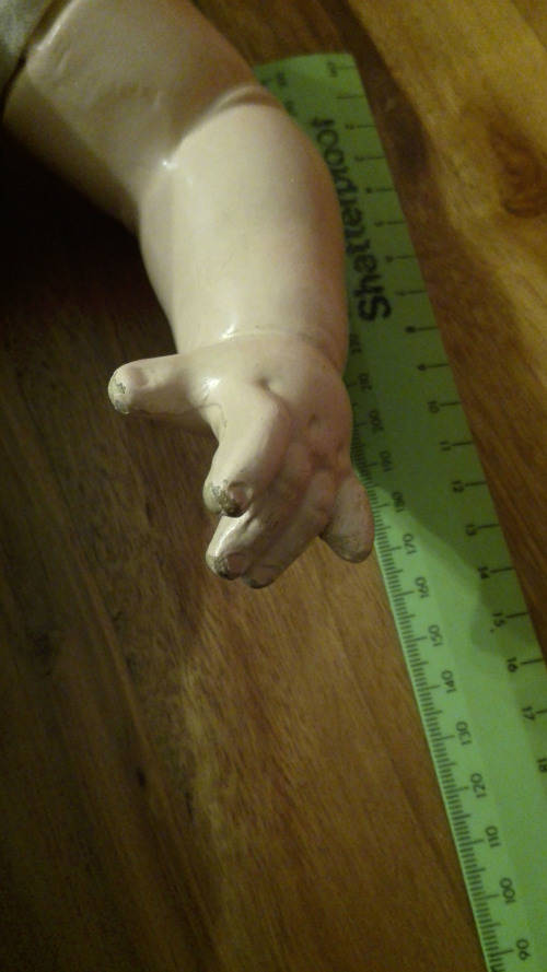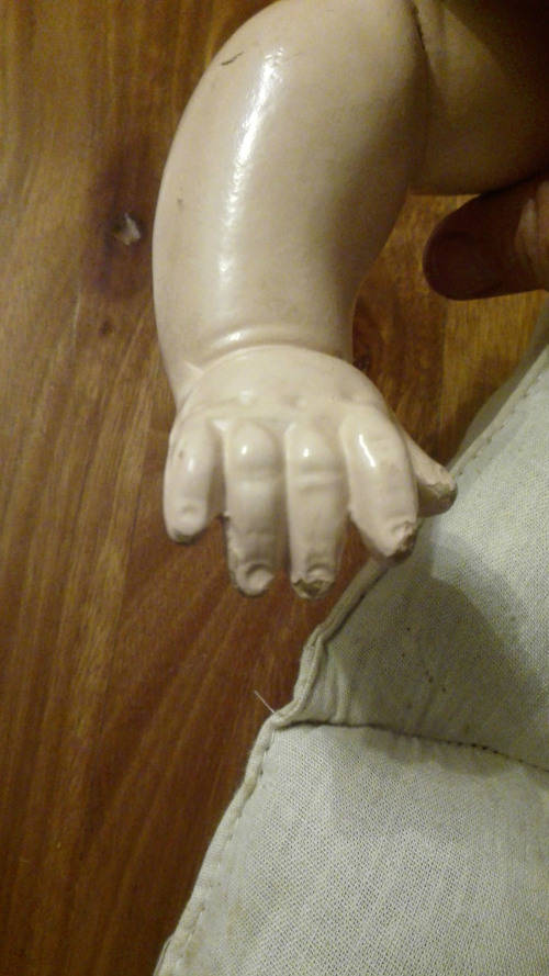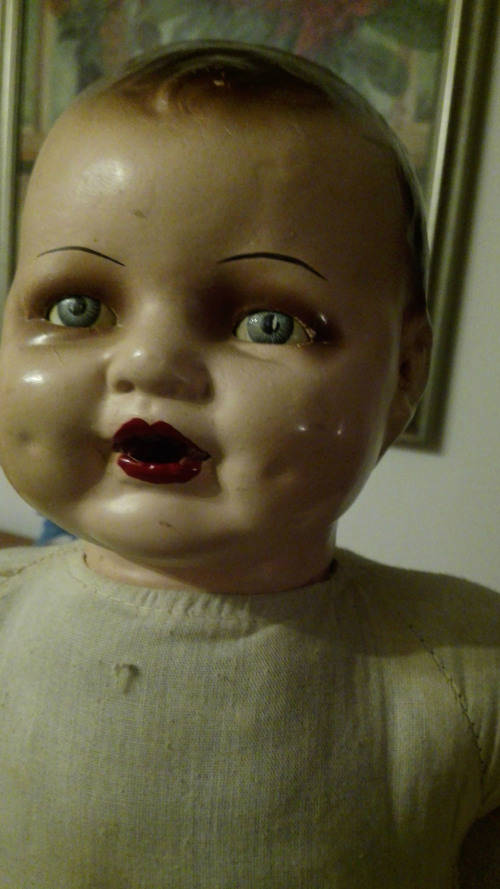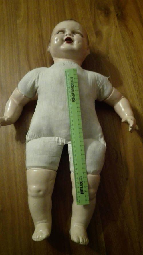 BEAUTIFUL 1920's DOLL. HAS A SPEAKER IN THE TORSO. WHICH IS ACTIVATED WHEN LAYING THE DOLL DOWN. THE SPEAKER IS NOT WORKING PROPERLY IN THAT IT MAKES A VERY FAINT SOUND.