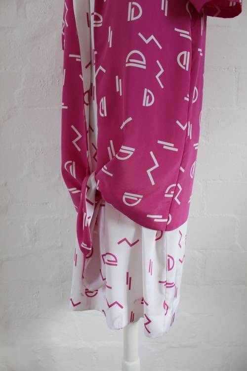 VINTAGE DROP WAIST TIE FRONT PINK WHITE PRINTED COCKTAIL DRESS - SIZE 10