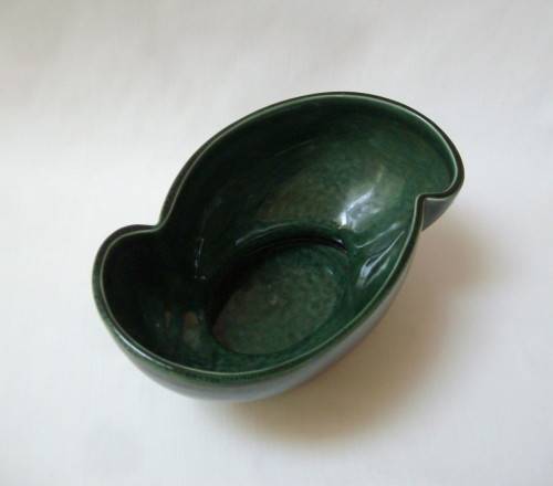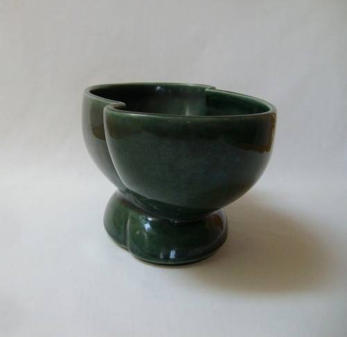 A mottled dark green glazed ceramic vase, of asymmetrical form,