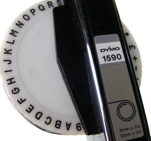 Extremely simple to use - Turn the wheel to the desired letter, press the trigger and the letter is imprinted on the tape, automatically advancing the tape. Turn to the next letter and press the trigger again and so forth. When done, use the manual advance knob to advance the tape and press the cutoff trigger to cut the tape and it automatically inserts a pull off tab, making it easy to pull the backing from the tape.