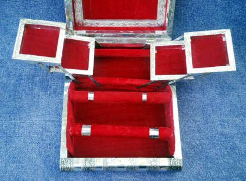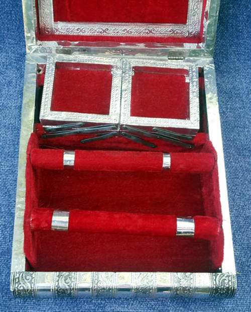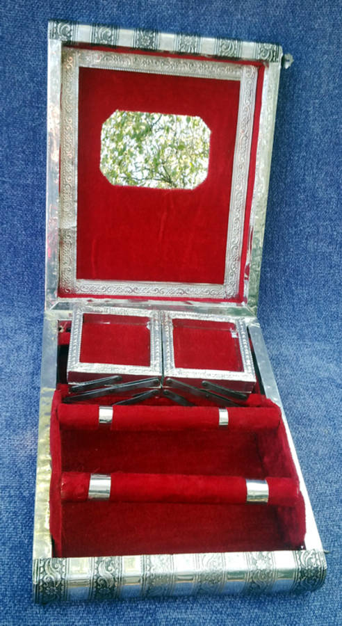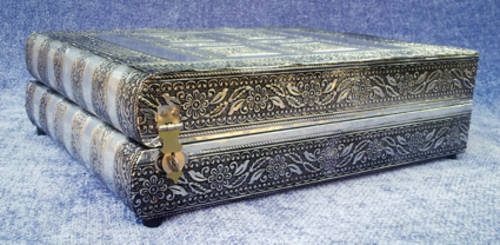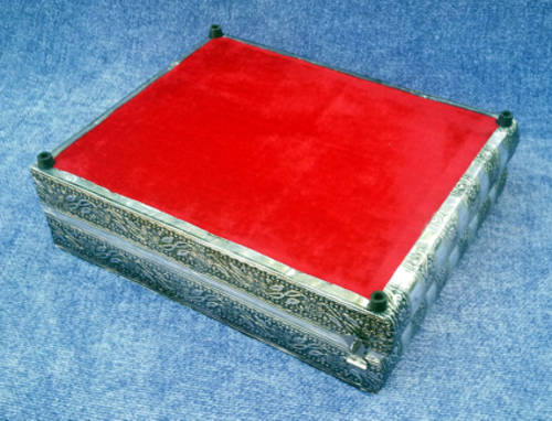 VINTAGE EMBOSSED-METAL "PEWTER" CLADDED JEWELRY BOX