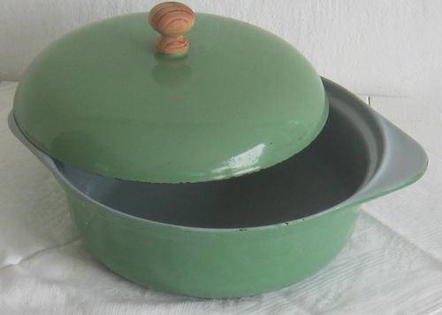 GREEN OUTER AND BLUE INNER ENAMEL CAST IRON POT