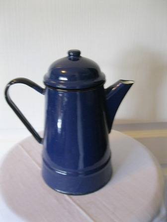 Vintage Navy Blue Enamel Coffee pot in mint condition, the person whose collection this was only displayed these items they were not used at all, the coffee pot is 22cm x 12cm