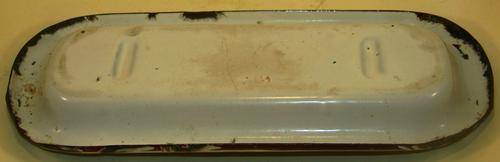 Vintage Enamel Soup dish - White with green leaves pattern- Dia. 20cm x 10cm x 1.5cm
