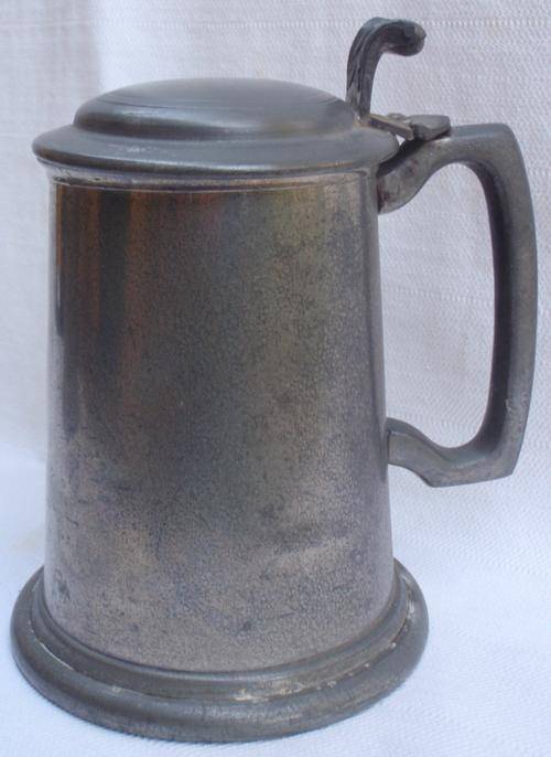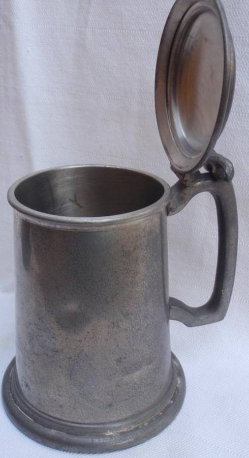 VINTAGE: LOVELY OLD ENLISH PEWTER TANKARD WITH HINGED LID. IN SOUND CONDITION - WITH LITTLE VINTAGE WEAR OF TWO SLIGHT DENTS AND THE LID IS A COUPLE MILIMETRES OUT. SIZE: HEIGHT 14CM X DIAMETRE AT BASE 10.5CM X DIAMETRE AT LIP 8CM. THIS IS A REAL TESTAMENT OF AN ERA OF GOOD WORKMANSHIP AND MATERIALS!!!