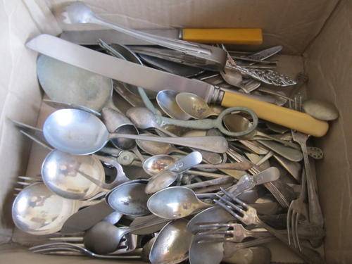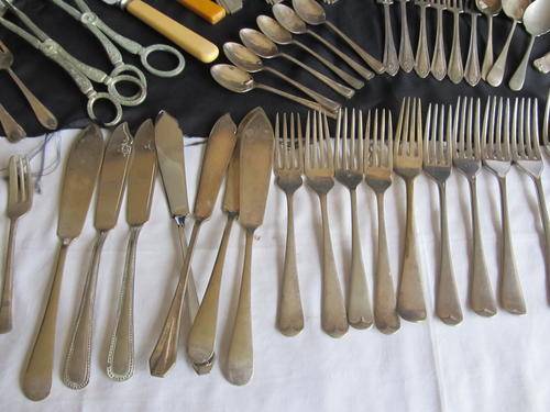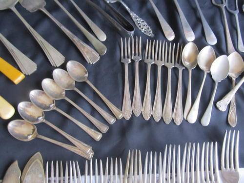 ![]() Bid with Confidence DUE TO HIGH POSTAGE RATES I RECOMMEND COMBINING WITH OTHER ITEMS. Post Office Strike ongoing - Alternative Shipping available - Please enquire VINTAGE EPNS Cutlery. consisting of sets of spoons, forks, fish knives, Salad Servers,tongs bread knife ,cake forks, pickle forks and odds. OVER 100 PIECES - ALL FOR ONE BID Please note these items show wear and tarnish from age and use. ![]()