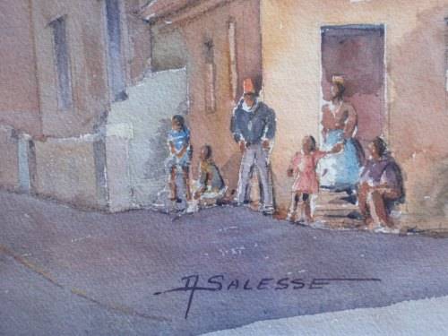 VINTAGE: FABULOUS ORIGINAL WATERCOLOUR by THE LATE, ANDRE SALESSE. ICONIC CAPE SCENE, PAINTED BY A VERY ACCOMPLISHED WATERCOLOURIST - SIGNED BY ARTIST. GOOD QUALITY WATERCOLOUR PAPER - UNFRAMED. SIZE: 50CM X 36CM.