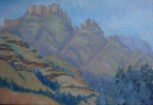 VINTAGE OIL - LOVELY SOFT PALETTE. FADED BEAUTY OF WELL KNOWN LANDSCAPE IN FABULOUS OLD OAK FRAME. THE ARTIST HAS A VERY SOFT, MINIMALIST STYLE OF PAINTING - OIL ON TEXTURED CANVAS. SIZE: 65CM X 46CM (TOTAL SIZE INCLUDING FRAME OF 9CM IN WIDTH.