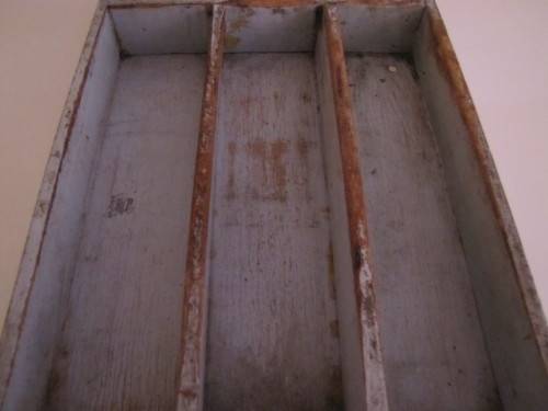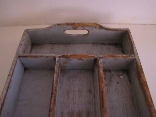 This characteristic vintage cutlery holder is in need of much TLC. The right person will find a home for it. It is 37cm in length, 25cm in width and 5cm in height. Please see pictures. Postage & packaging R50