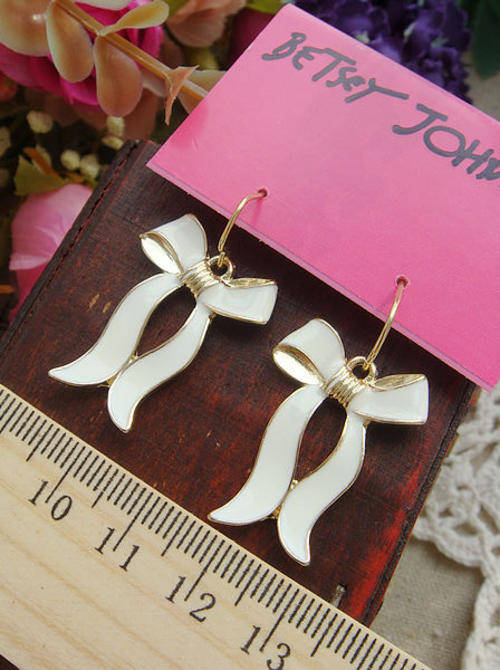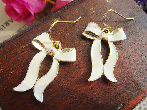 Vintage Fashion Gold White Enamel Bowknot Dangle Earrings