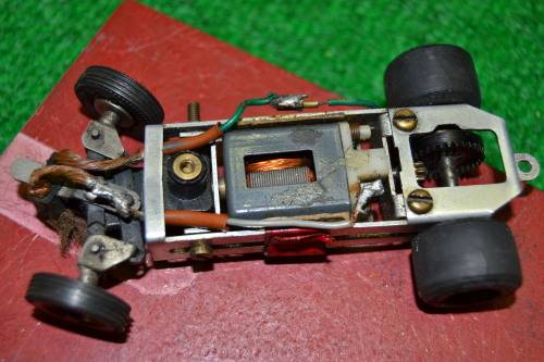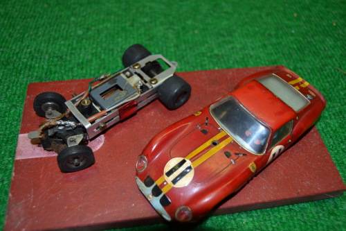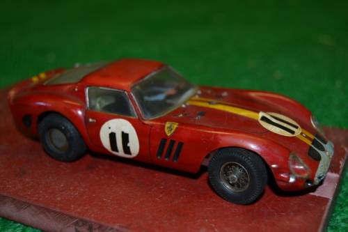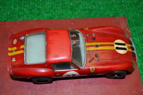 Vintage Ferrari, with ali frame chassis, not sure of make, but it has front steering. running condition, front wheels good, back wheels needs replacing. body still good and the driver figure nice detail, Any ? , feel free to contact me