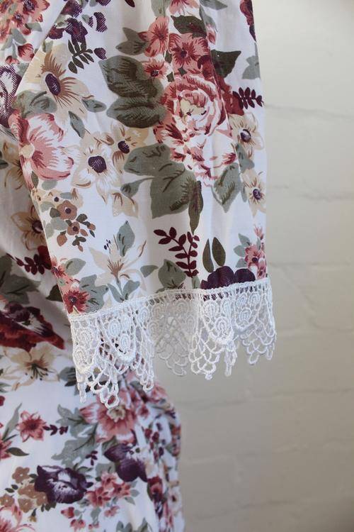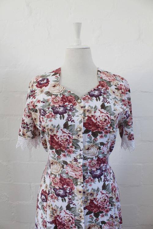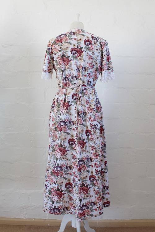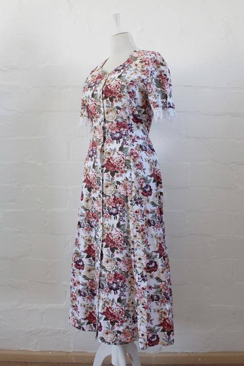 VINTAGE FLORAL PRINT LACE TRIM BUTTON DOWN DAY DRESS - SIZE 12