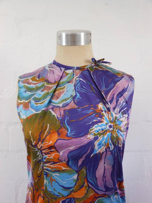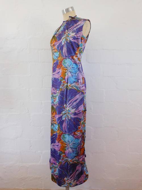 VINTAGE FLORAL PRINT PSYCHEDELIC PURPLE SLEEVELESS MAXI LONG DRESS - SIZE 10