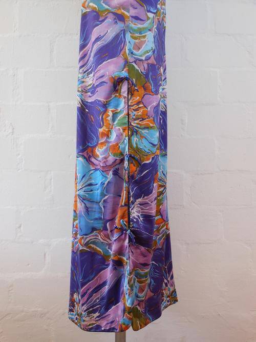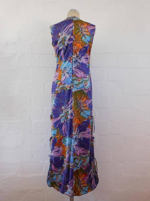 Stunning groovy authentic vintage full length dress with psychedelic print and ties along side slits. Very good condition. Size 10/ 34.