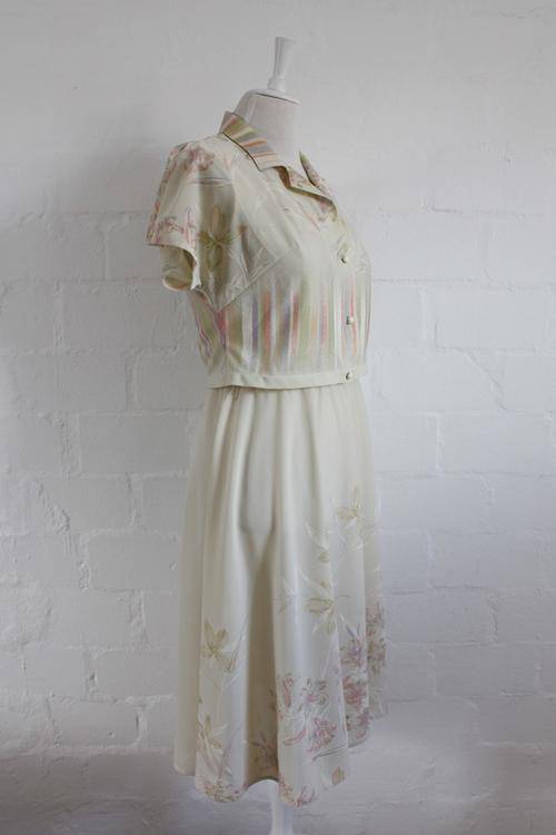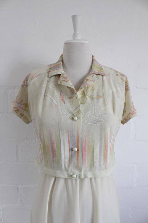 VINTAGE FLORAL PRINT TWO PIECE DRESS TOP SET - SIZE 12