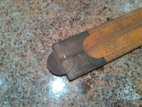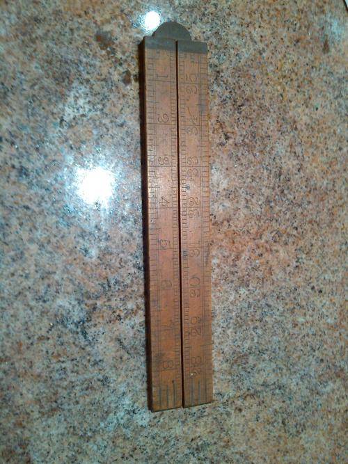 Up for auction is a Vintage Folding Wooden & Brass Ruler.