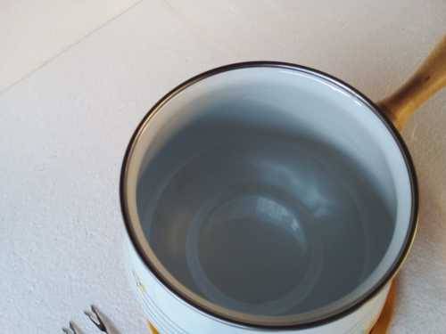 A rare find . A clean Enamel Fondue set complete with unused clean forks. The enamel Pot handle can be unscrewed for easy storage.