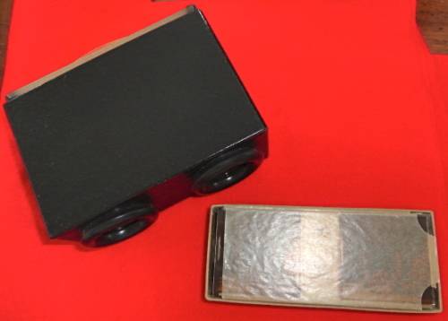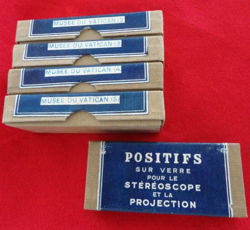 Vintage stereoscopic viewer with five boxes of glass plates . The scenes are of the Vatican . The condition of this lot is very good indeed . The slides are all separated in individual sleeves . The viewer box is made of card . It has the leaflet in the box too . Please note that I only use Postnet and a small parcel will be R99 .