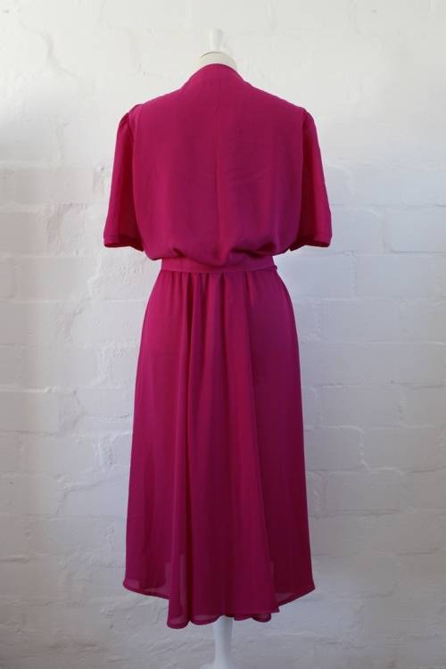 VINTAGE FUCHSIA PINK PEPLUM BELTED COCKTAIL DRESS - SIZE 16