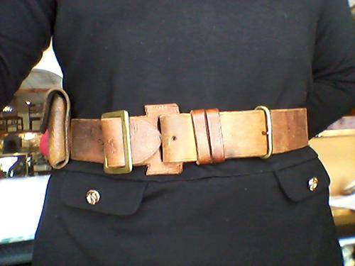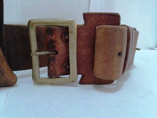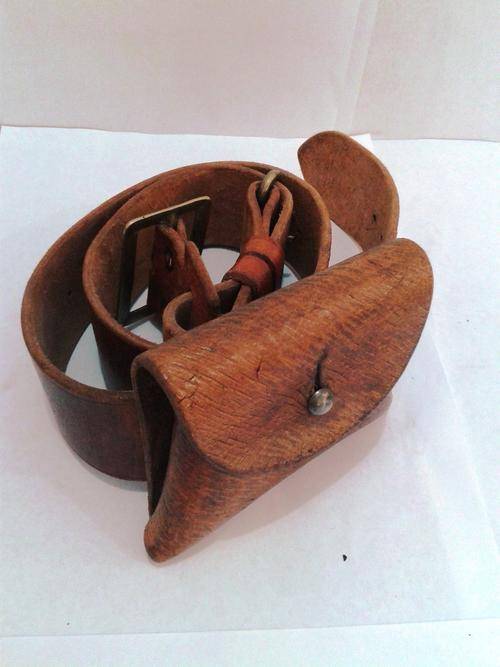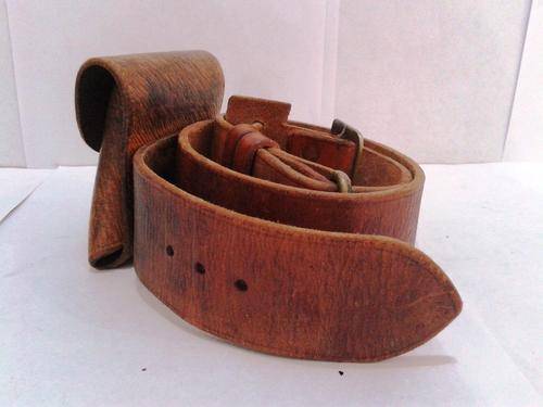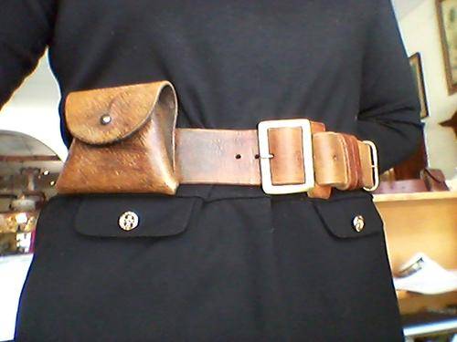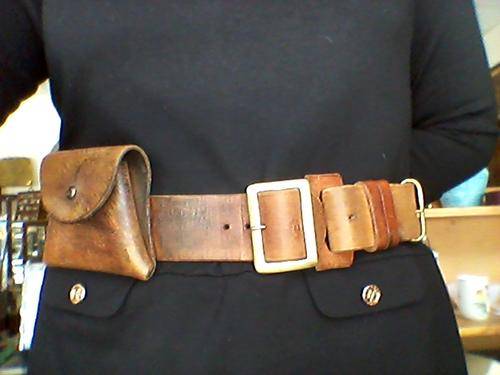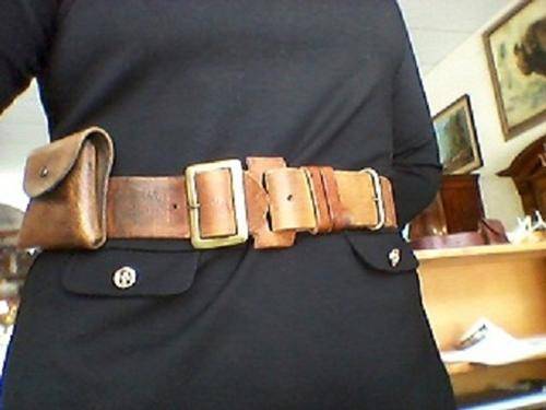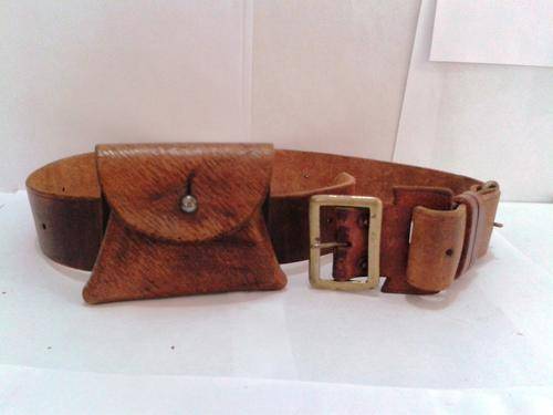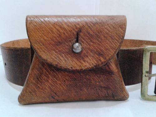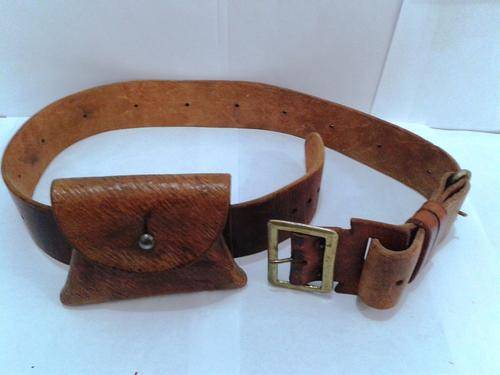 Vintage Full Grain Leather Waist Belt, pouch. Genuine Military Soldier WWI/ WWII Uniform. Tan