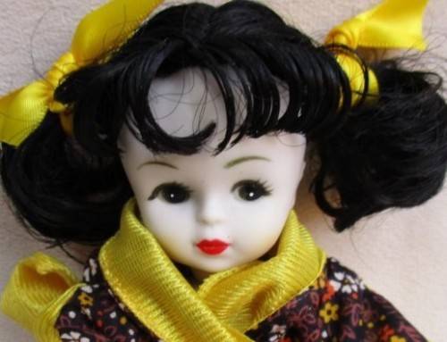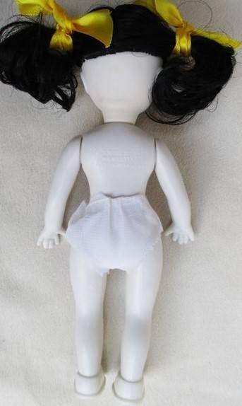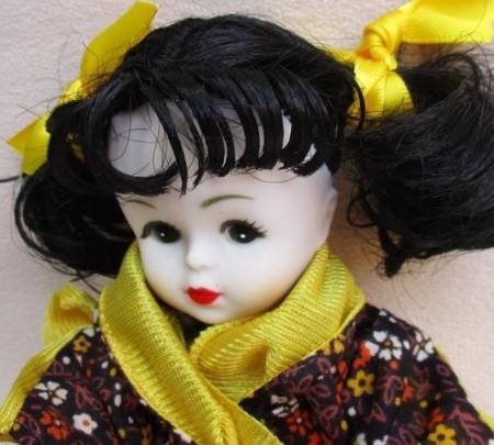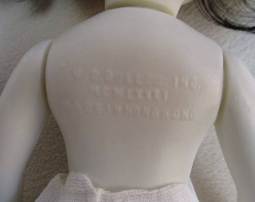 20CM TALL AND IN VERY GOOD CONDITION WITH MOVEABLE HEAD, ARMS AND LEGS. MOULDED SHOES. MARKED 'U.D. DOLL CO. INC. MCMLXXXI MADE IN HONG KONG' ON BACK. SO PRETTY! REFER IMAGES