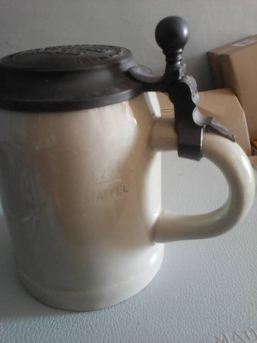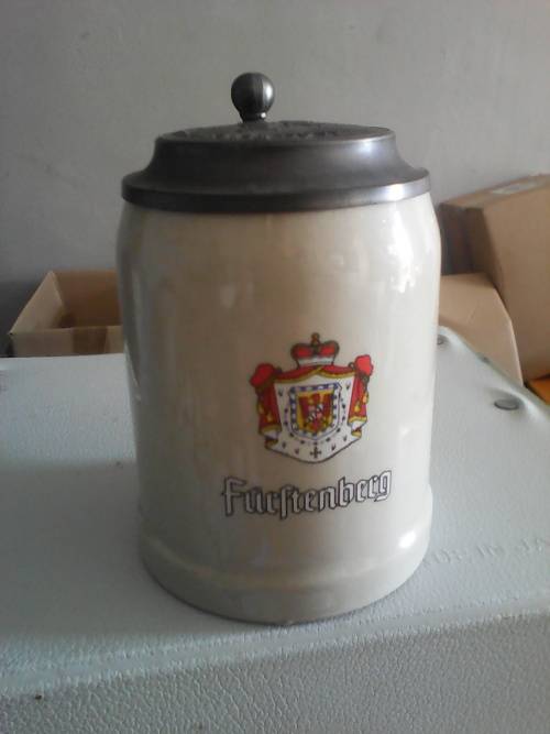 Pewter lid is engraved Furftenberg pilfener and bottom of tankard marked West German