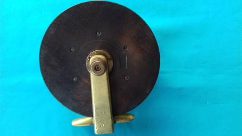 VINTAGE 'FUSELOCK" LAMINATED WOOD SCARBOROUGH REEL  FITTED WITH  BRASS BRACKET & STEEL/ALUM HANDLES