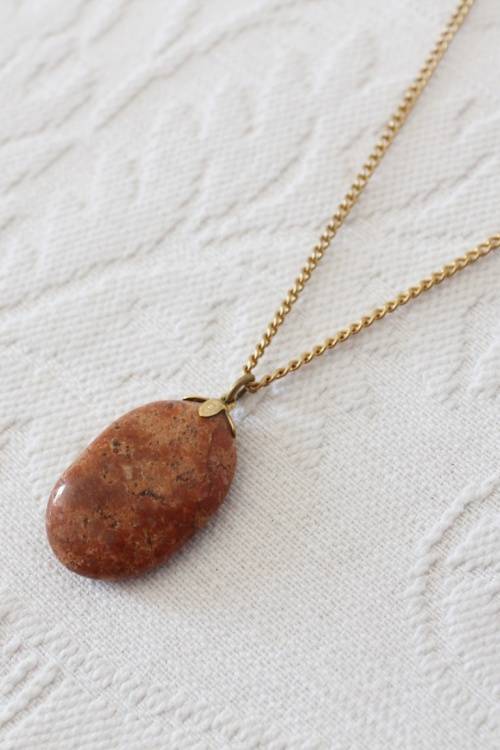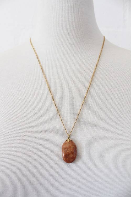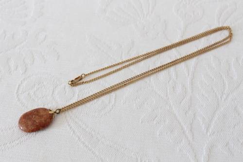 Authentic vintage brown semi precious gem stone pendant necklace.
