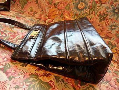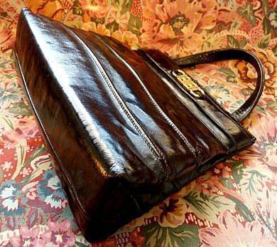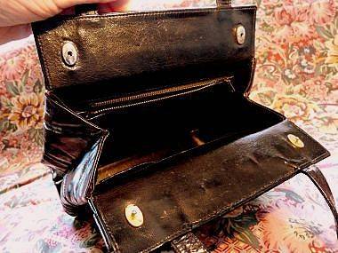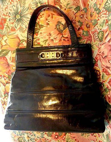 BEAUTIFUL VINTAGE HANDBAG IN GENUINE BLACK LEATHER .