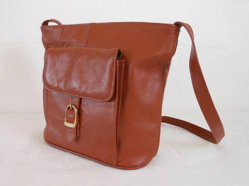 VINTAGE GENUINE LEATHER BROWN BUCKET SHOULDER HANDBAG BAG