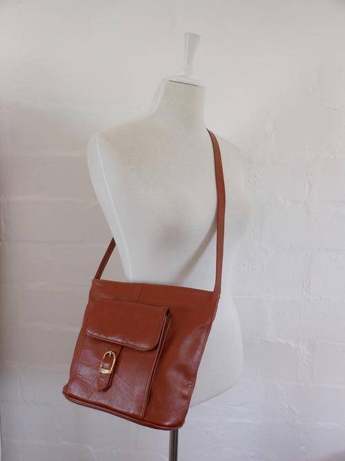 Beautiful authentic vintage real leather bucket style bag. Very good condition, with a small light pen mark on front. Bag measures 29 cm x 24 cm x 11 cm. Strap can be adjusted from 90 cm to 102 cm.