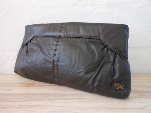 VINTAGE GENUINE LEATHER DON MICHELE BROWN CLUTCH PURSE BAG HANDBAG