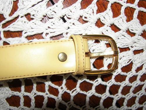 VINTAGE GENUINE LEATHER ITALIAN DESIGNER LIGHT YELLOW BELTSIZE APPROX(34-36)