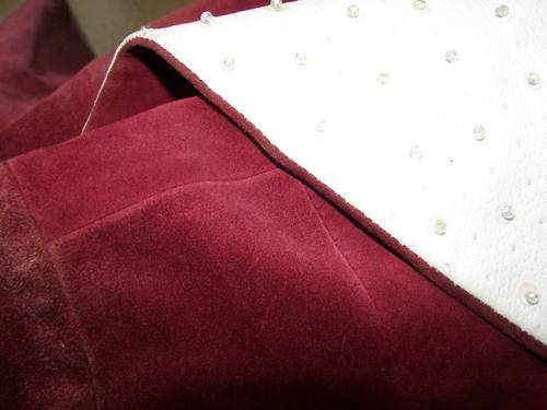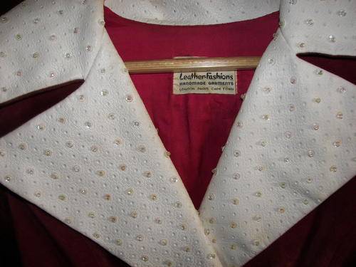 VINTAGE GENUINE LEATHER MAROON AND WHITE SEQUINED LONG FORMAL LINED DRESS SIZE 36