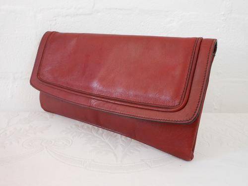 VINTAGE GENUINE LEATHER OXBLOOD RED CLUTCH BAG PURSE