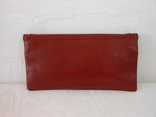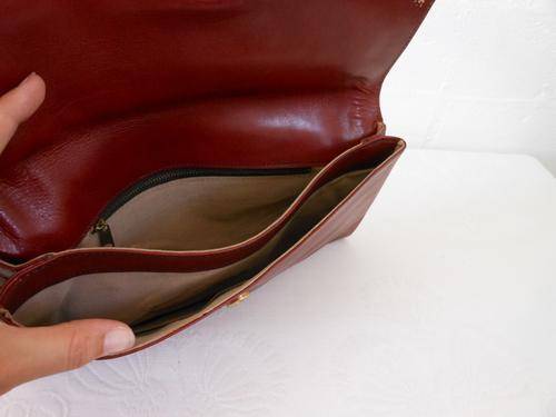 Beautiful authentic vintage clutch bag in oxblood red made from high quality real leather. Very good condition, with a small spot of loss to colour under flap and minor wear to edges of bag. Some tiny speckles of black on front near bottom of bag (barely noticeable). Measures 30 cm x 16 cm.