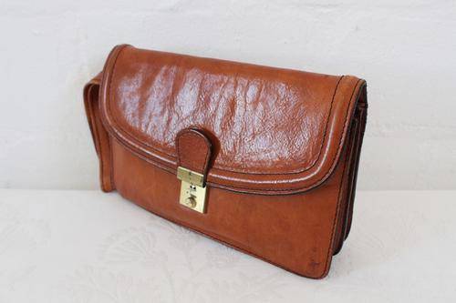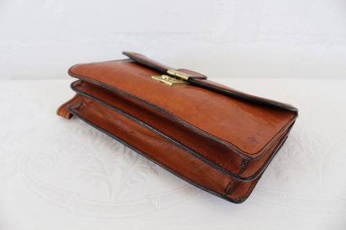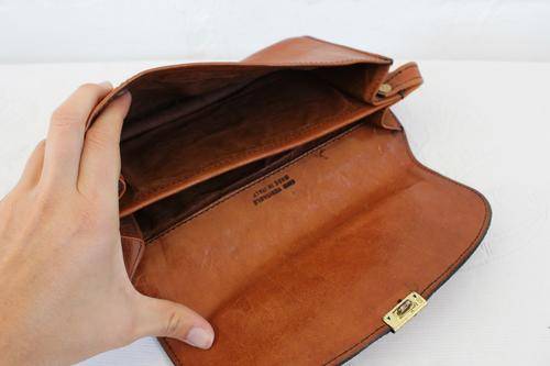 VINTAGE GENUINE LEATHER TAN BROWN CLUTCH WRISTLET BAG - MADE IN ITALY