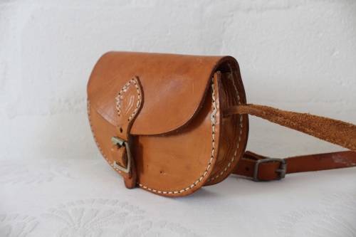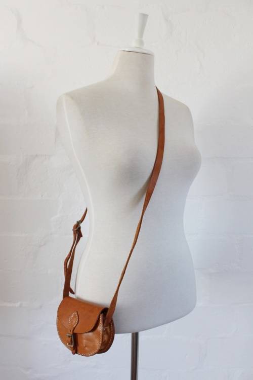 VINTAGE GENUINE LEATHER TAN BROWN MINI SLING BAG HANDBAG
