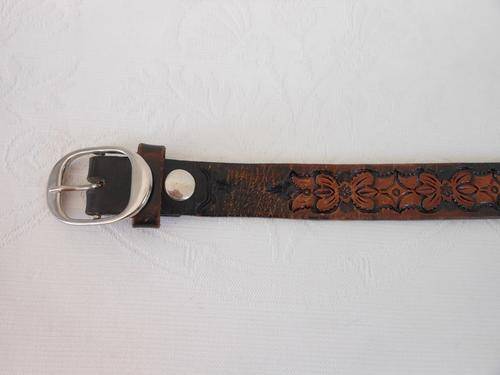 Stunning authentic vintage real leather hand tooled waist belt. Good condition, with some wear to leather. To fit waist size 60 cm to 76 cm. 3 cm wide.