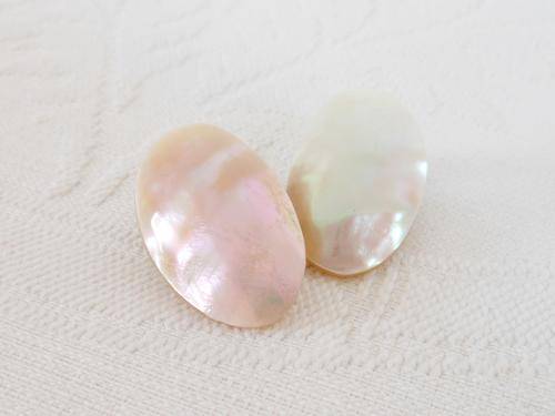 VINTAGE GENUINE MOTHER OF PEARL OVAL CLIP-ON EARRINGS