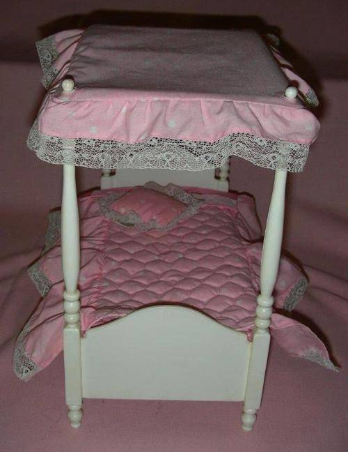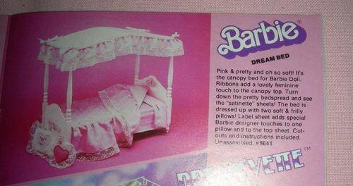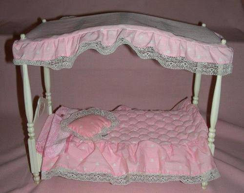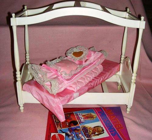 Condition: Excellent - Another toy belonging to my daughter, and very well looked after - Please note: the top strut of the bed was broken and I had it fixed, and a side strut near the top of the curve is broken which has not been fixed, needs glue, but the canopy does cover it. The bottom sheet has been taped to the foam mattress because it kept slipping off the bed ( well you had to have silk sheets, Barbie? ) No longer pure white, has discoloured slightly over the years. It is 30/31 years old.