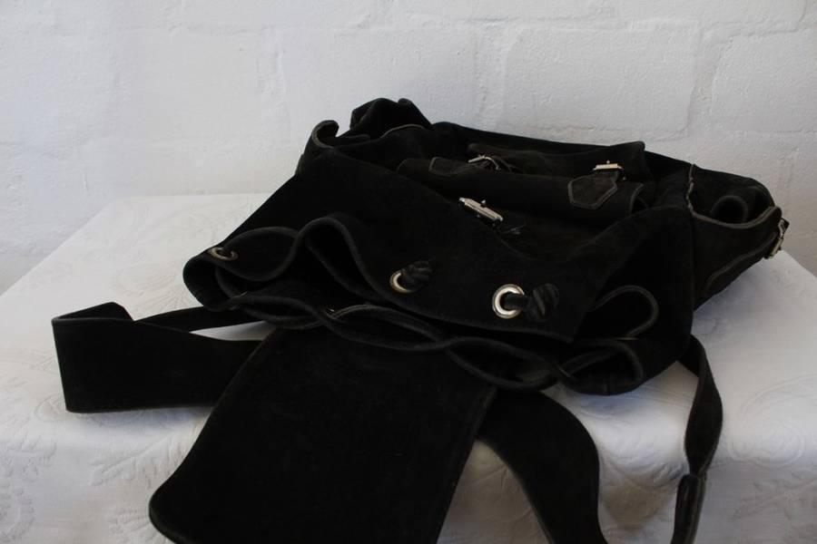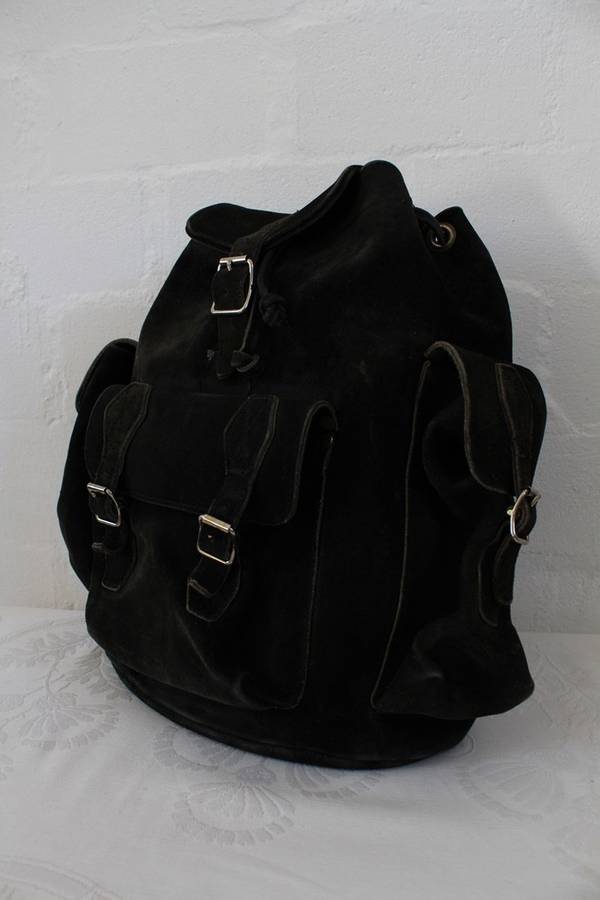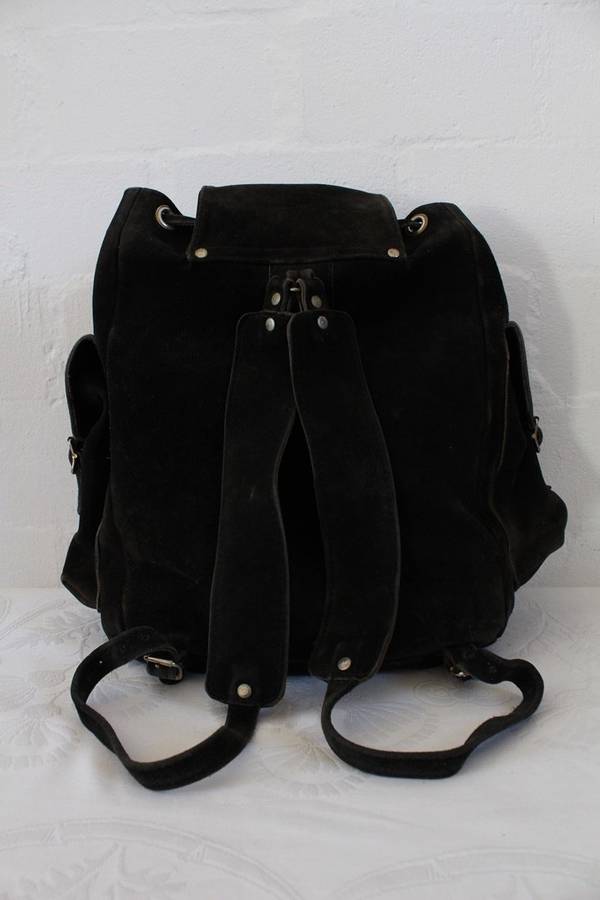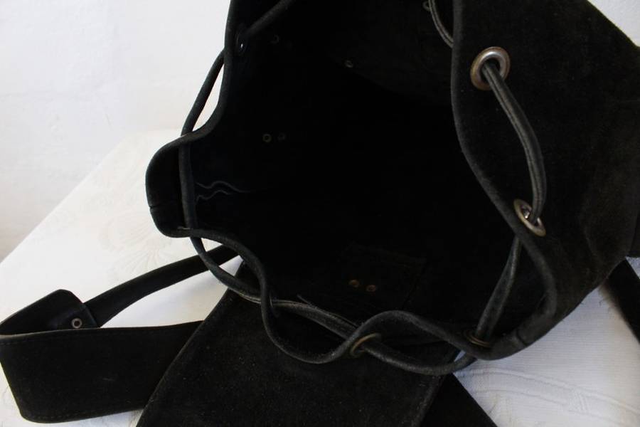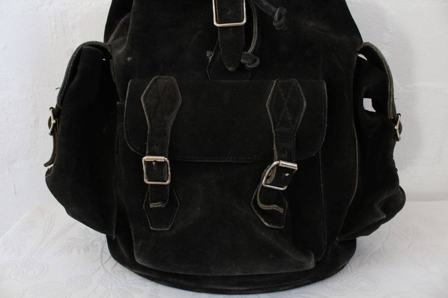 VINTAGE GENUINE SUEDE LEATHER BLACK RUGSACK BACKPACK BAG