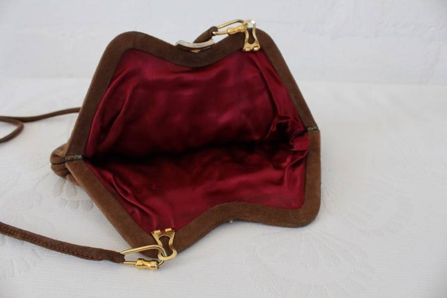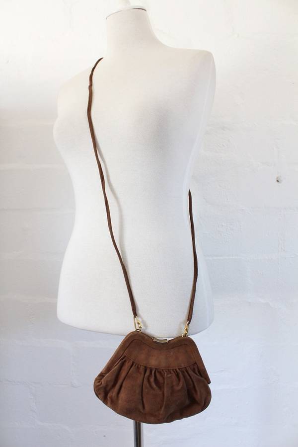 VINTAGE GENUINE SUEDE LEATHER BROWN TAN MINI SLING BAG HANDBAG
