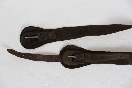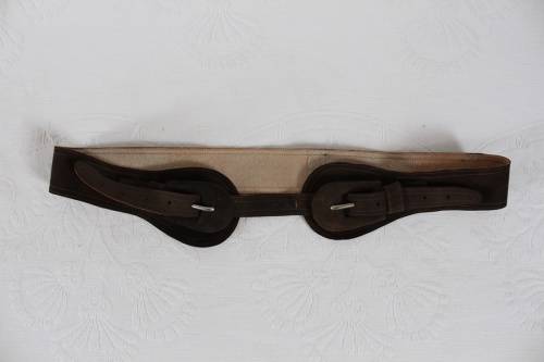 Authentic vintage dark brown suede waist belt with unique double buckle.