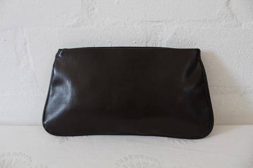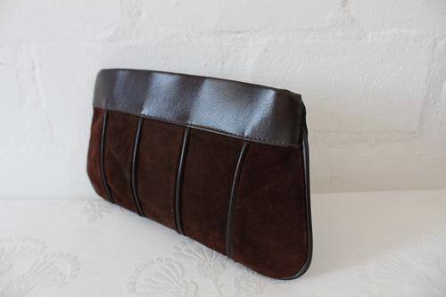 VINTAGE GENUINE SUEDE LEATHER VINYL BROWN CLUTCH BAG HANDBAG