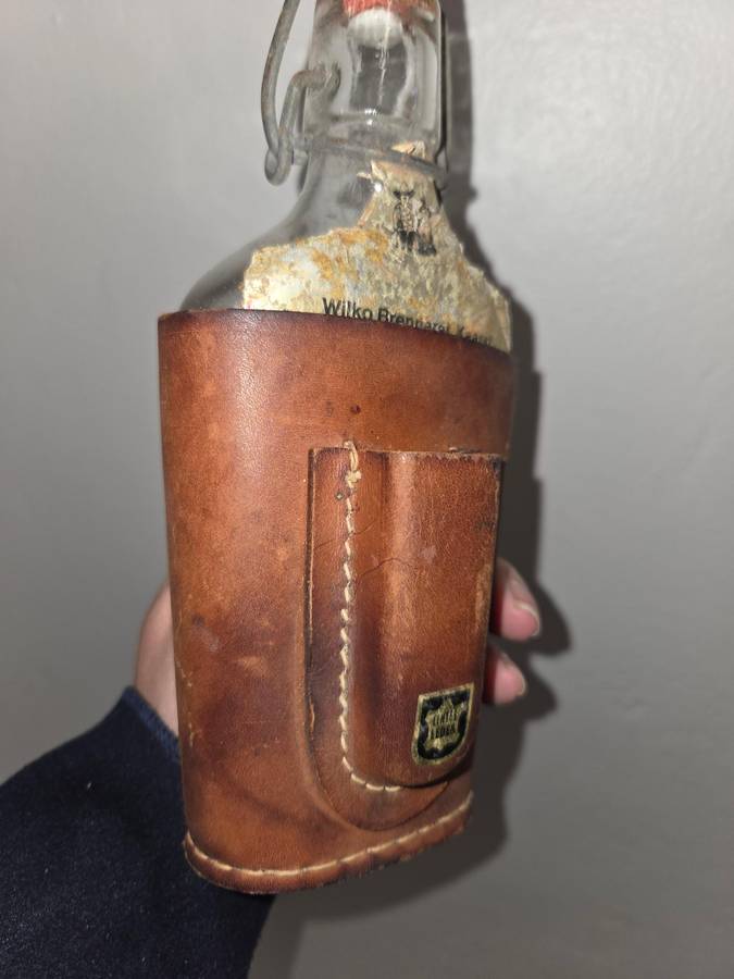 Vintage German Bottle with Leather cover and lighter space