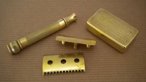 This a pocket edition with a 3 piece razor and gold plated blade box.